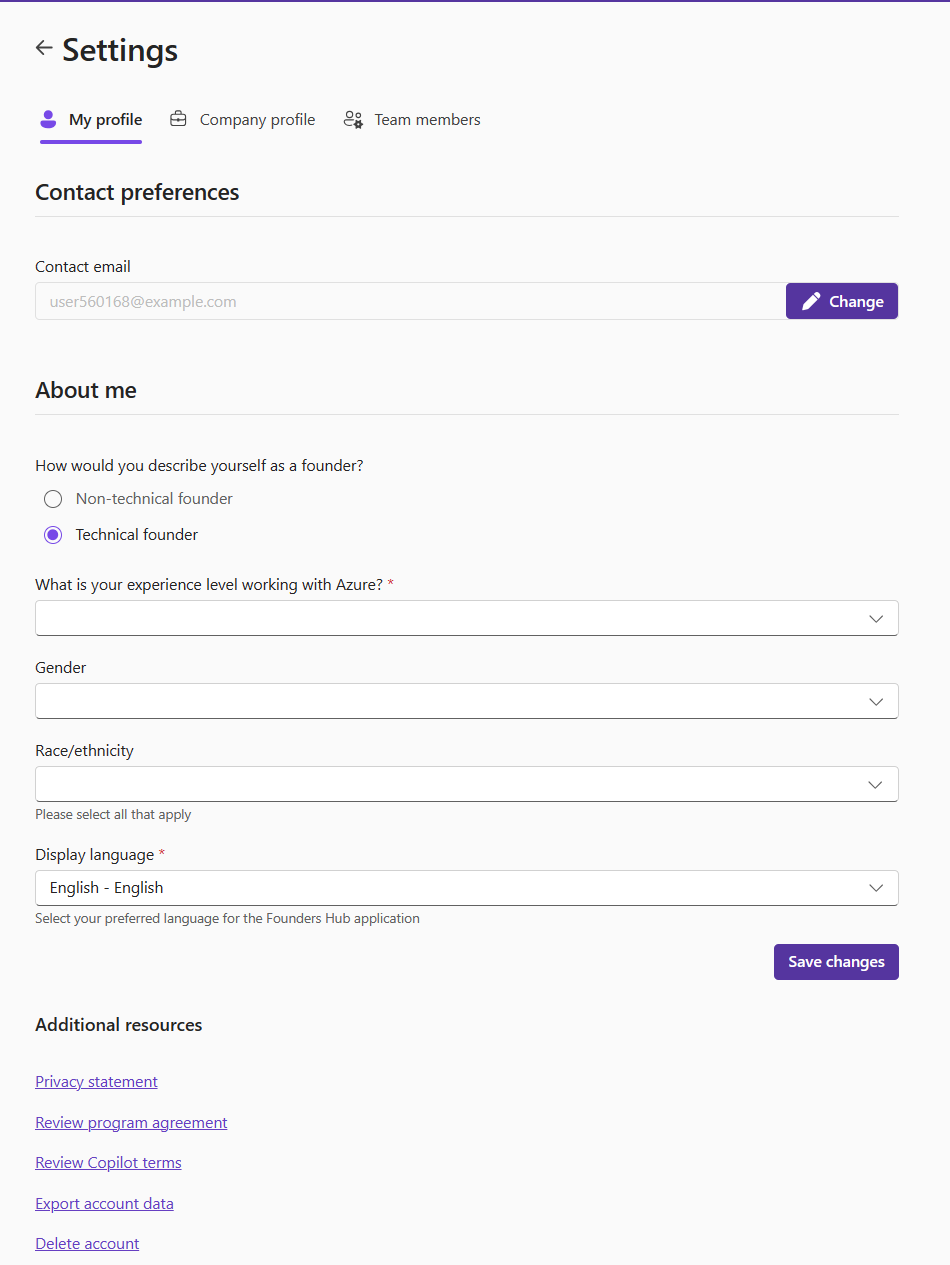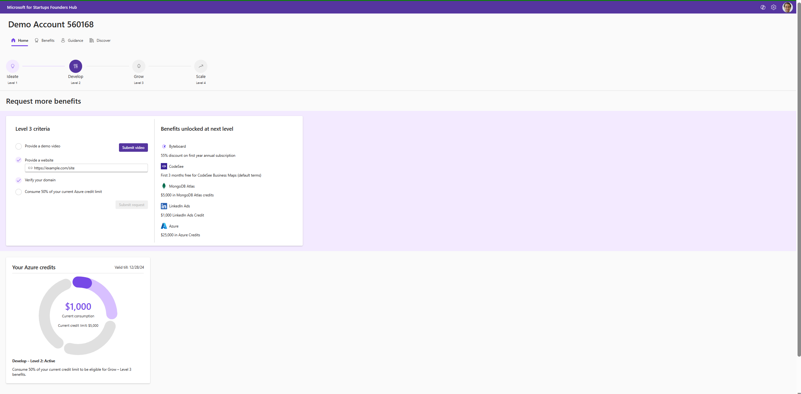 - Log into the Microsoft for Startups Founders Hub at https://portal.startups.microsoft.com.